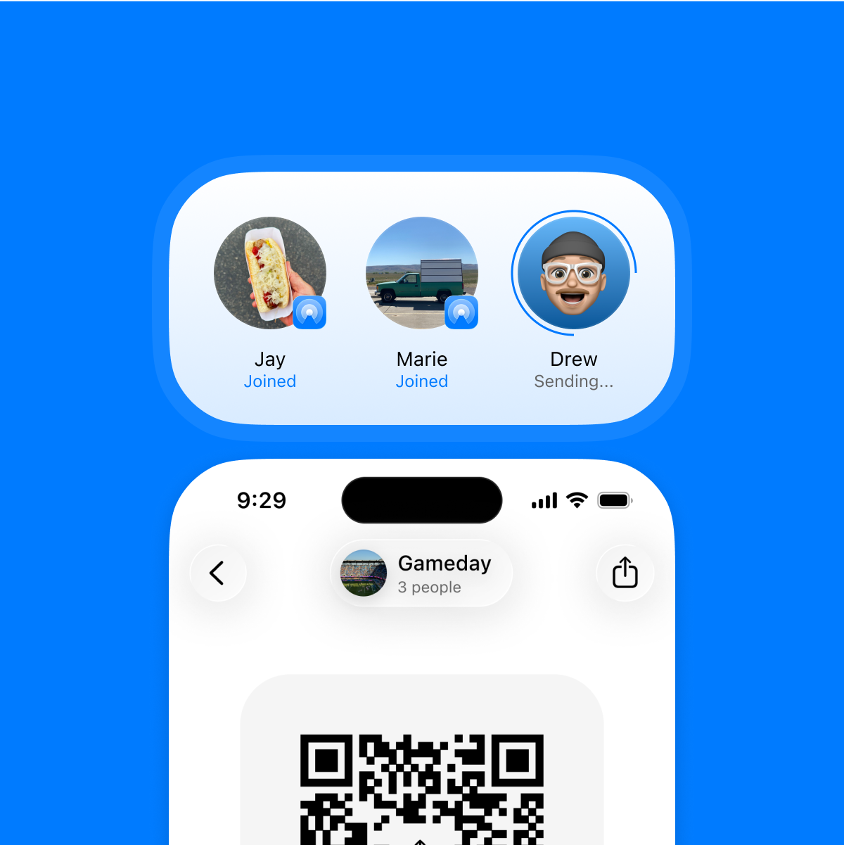 Optionaly apply additional controls like expiring and one-time-use links, passcodes, or lock the group at anytime. Coming soon.