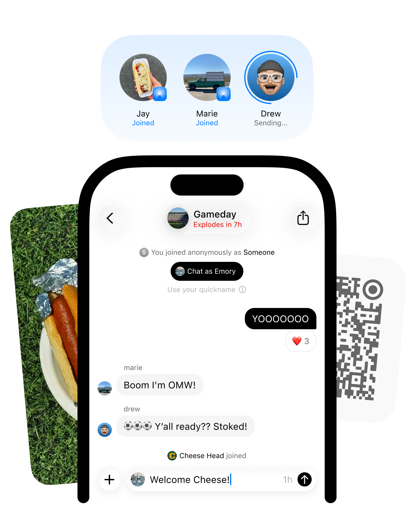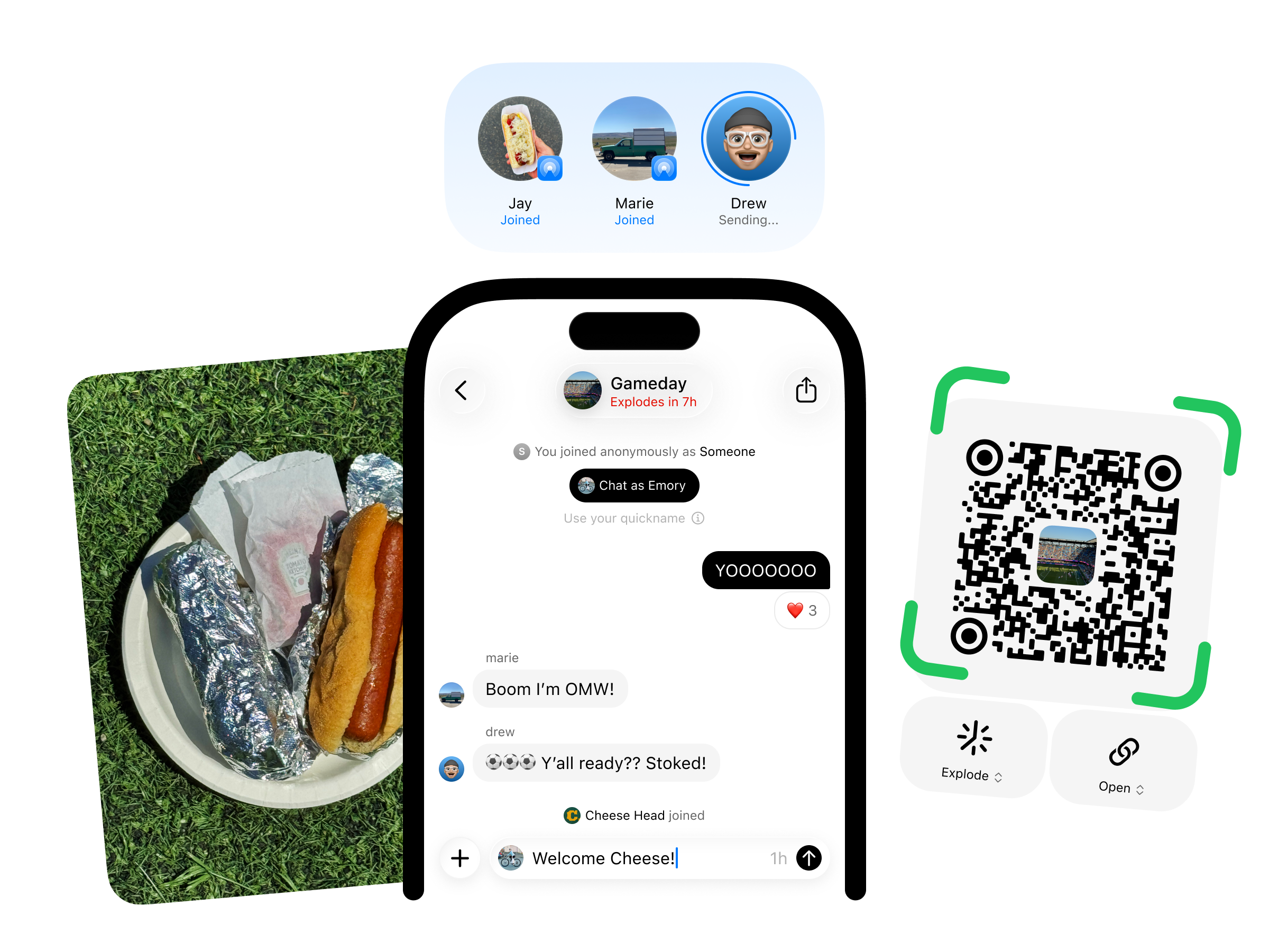 Simply scan, tap or airdrop into a convo. Convos doesn’t require an account, ever.