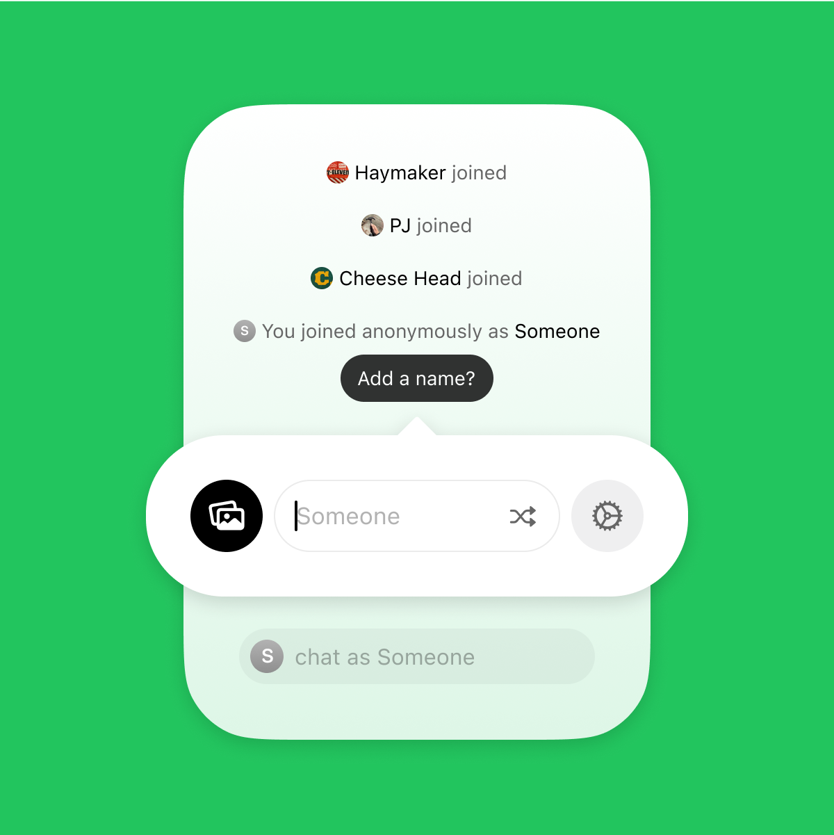 New you in every convo. Choose how you show up — set a name and pic, or just stay Someone.